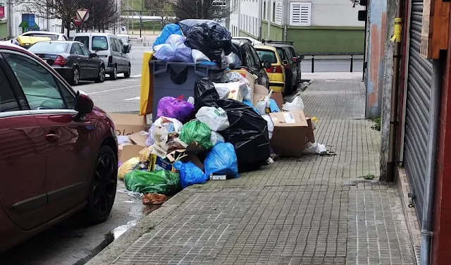 Lixo acumulado nas rúas da Coruña, en febreiro de 2022 CC-BY-SA Praza Pública